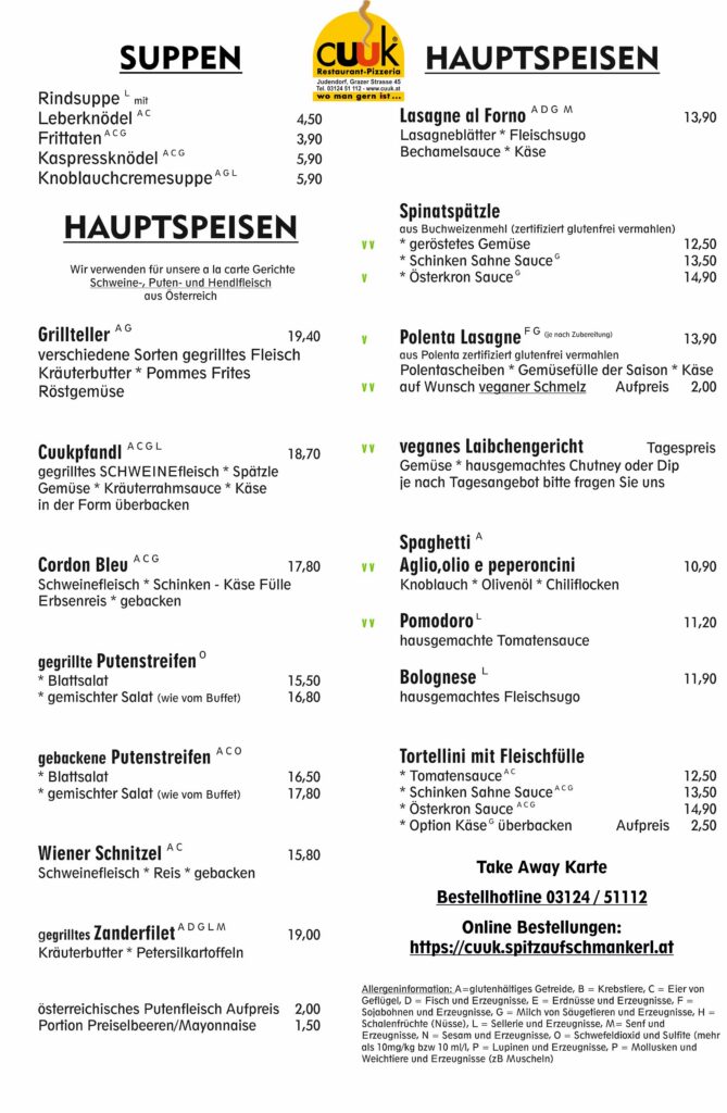 UNSERE TAKE-AWAY SPEISEN- & GETRÄNKE KARTE