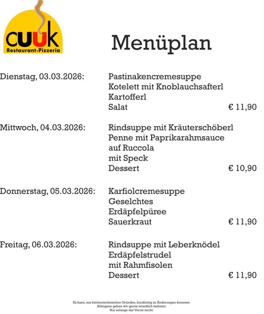 Die letzte Bestellannahme für Hauptspeisen ist um 20.30 Uhr,